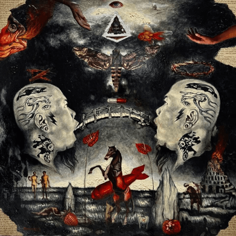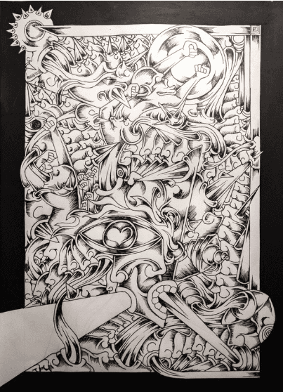 MP. Paranoia and Wilderness is a series of three artworks drawn from my personal experiences, functioning as a visual diary created within a specific period of time. The works are shaped by global conflicts like war, religion, genocide, and corruption, which triggered my fear and anxiety. In searching for peace, I began reconnecting with nature through daily biking and trail exploration. In these moments, I experience tranquillity and spiritual grounding. This body of work is not an escape from reality, but a reflection on why humanity chooses conflict over reconnection with nature, offering a positive awareness to the community.