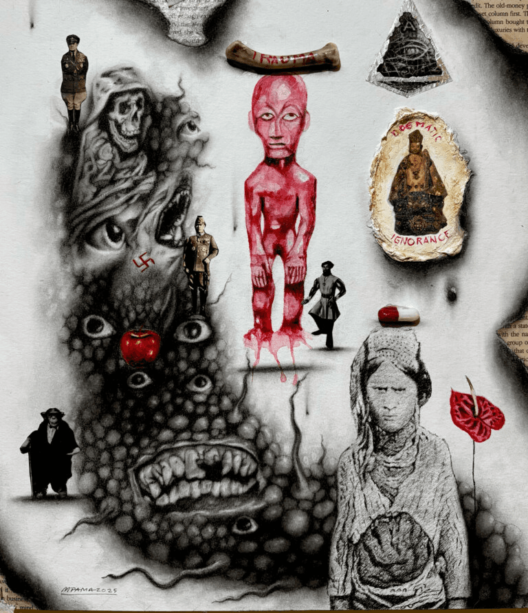 MP. I don’t believe in fixed identity. What matters is creating work and mastering the characteristics of one’s process. My practice is deeply personal and socio-political, using metaphor to confront and address global issues.