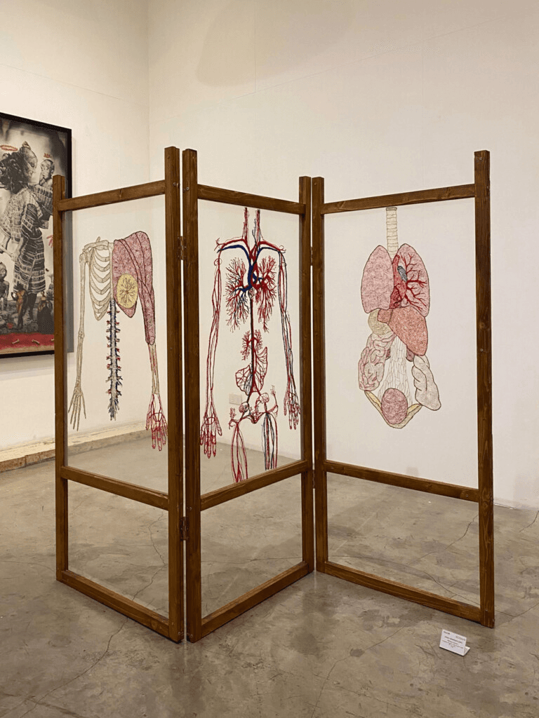 ZM. I discovered my interest in embroidery during the pandemic where I had a time to experiment different art practices and time to contemplate about my identity. I found my flow through threads as it reminded me of my medical sutures during my heart surgery in 2016. Threads became a personal symbol of life as I survived Tetralogy of Fallot, a rare heart defect with 4 different heart problems that can lower the percentage of life expectancy as I grow older. My childhood and my teenage years consisted of physical limitations hence I developed an interest in music and art, practices that I am able to do without requiring my body to move a lot.