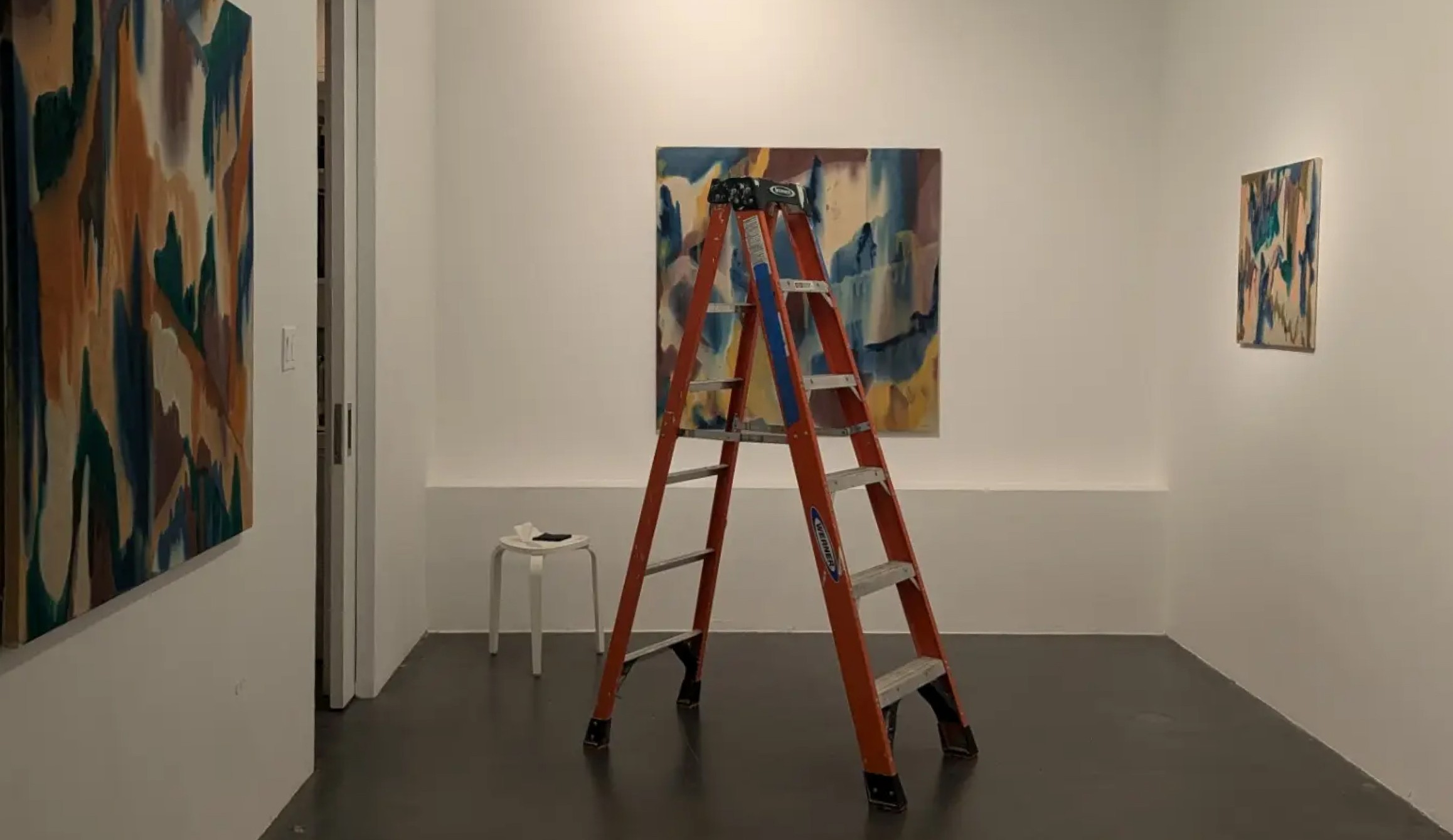 CS. I think there’s always parts of your life that sneak into your work. That’s true for me, anyway. For me, a large part was figuring out how to make work in the limited amount of time I had when I started exploring these pour paintings. I was working a full-time onsite job in Central London and had to really carve out the time to go to my studio in Hackney Wick. Compared to my earlier painting process, this suited my life at the time more, because it was a more immediate process driven by instinct and muscle memory. It didn’t require me to spend as much time in the studio as I used to have to.