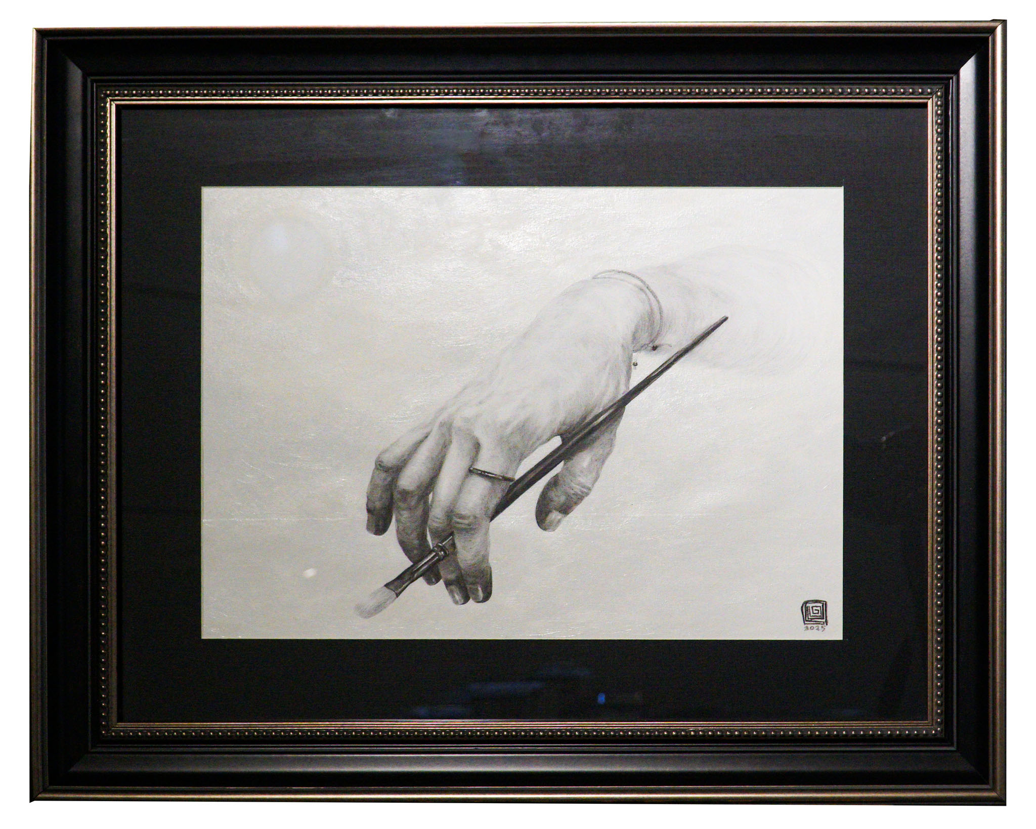 On “The Weight of a Brush, 1 & 2” These are self-portraits, really. When I fell ill, I avoided seeing my reflection, but I couldn’t stray from seeing my hands. I see them blacken, quiver and struggle. I see them as I work in the studio. And although they remind me I am sick, the way they move, and struggle reminds me I am still alive.