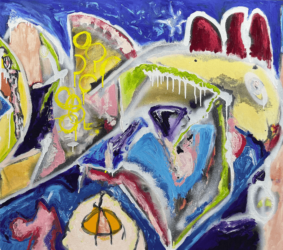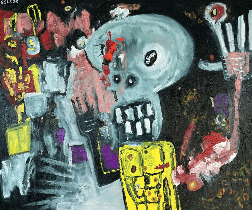 KBC. There was no single moment that inspired the work, but rather an accumulation of thoughts and experiences over time, and in many ways, across my life as an artist. This time in particular, I felt a strong pull to return to a more instinctive way of making, similar to how I made art as a child, but with greater awareness and intention. This is also an evolution of imagery that I have been pursuing, while returning to a grounded way, if that makes sense. The theme and title express primal thoughts and emotions through paranoia, and wilderness spoke to me as a state of navigation, not one of being lost but rather a state of trying to figure things out, while being okay with not having any clear answers yet. The journey is as important as the destination. An unexpected moment that shaped the final outcome was the storm, Tino.